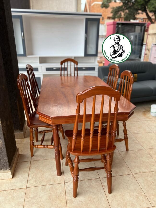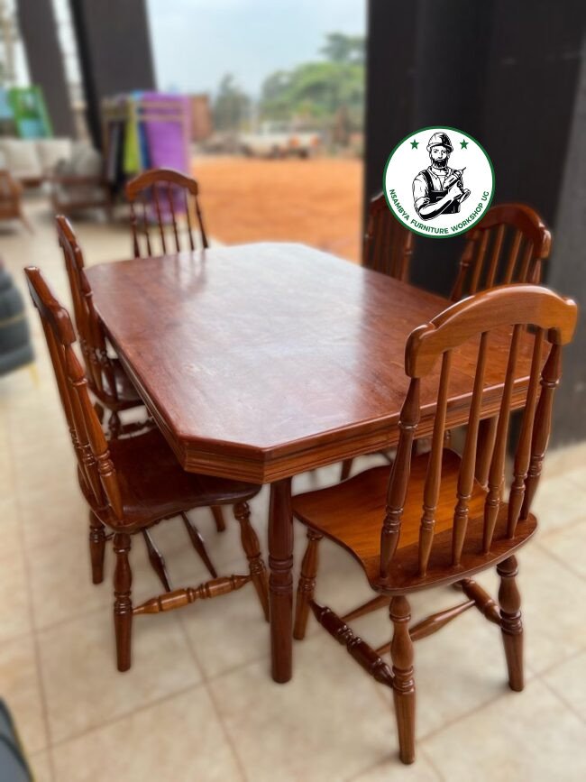 Experience the natural beauty and durability of the 6-Seater Mugavu Dining Table from Nsambya Furniture Workshop Ug. Crafted from high-quality Mugavu wood, this dining set is designed to bring warmth, strength, and sophistication to your dining space.