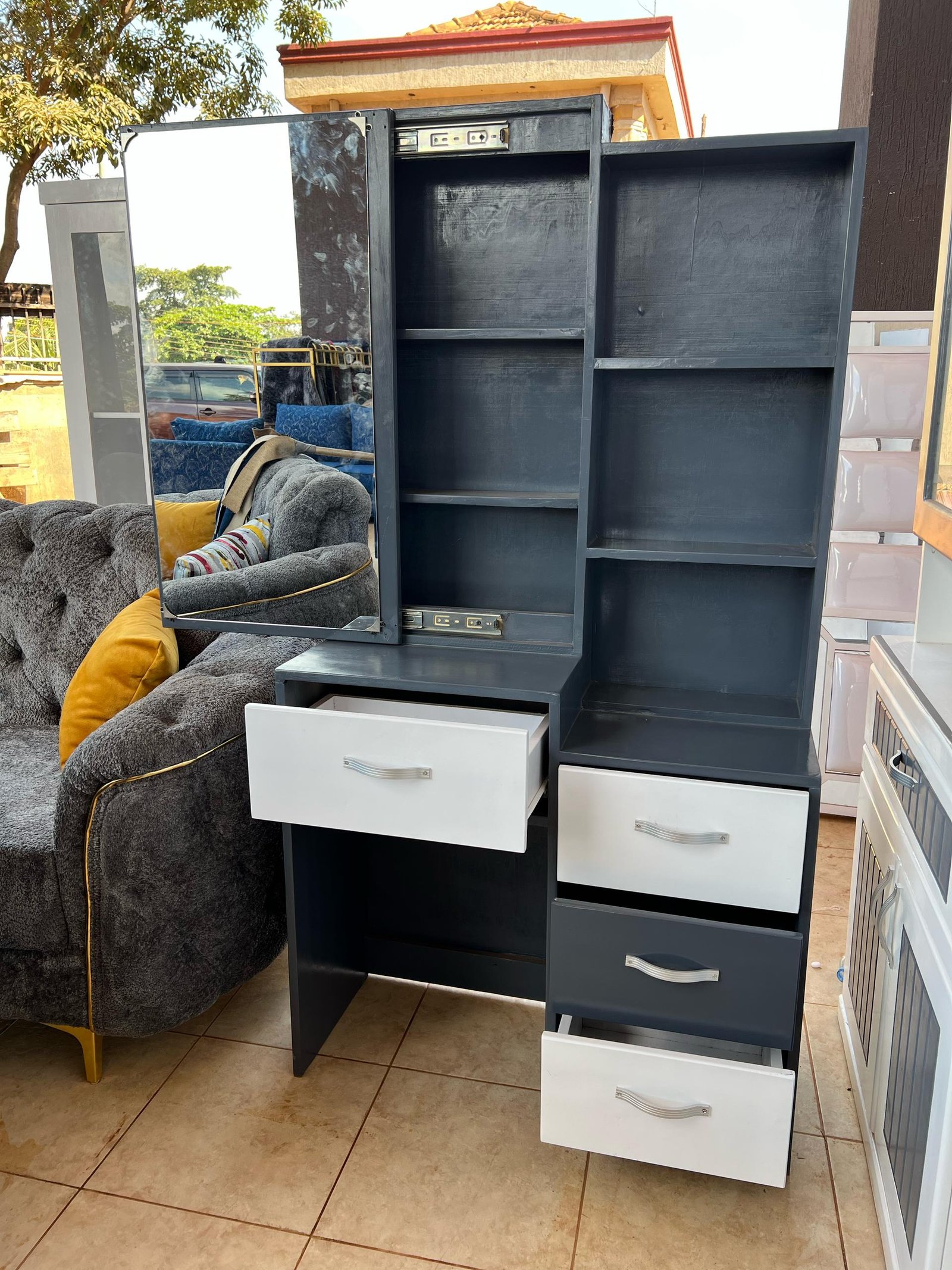 Upgrade your bedroom or dressing area with a stylish Dressing Mirror from Nsambya Furniture Workshop Ug. Designed for both beauty and functionality, our mirrors help you get ready in style while enhancing your space.