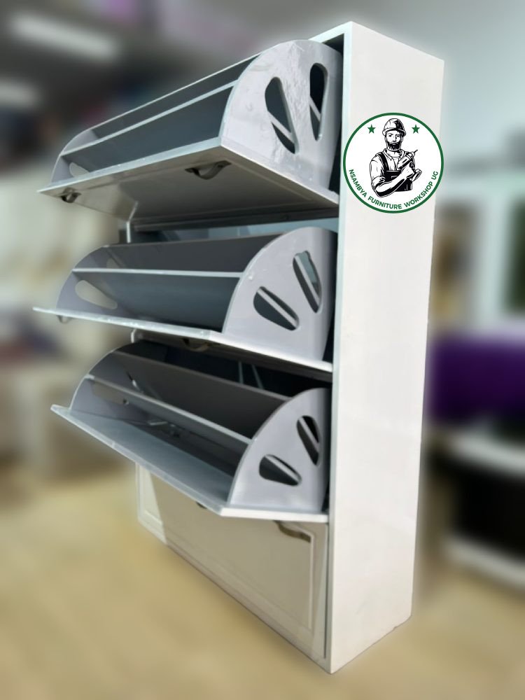 Keep your footwear organized and your space clutter-free with Nsambya Furniture Workshop Ug’s innovative Flip Shoe Rack. Designed for maximum functionality, this space-saving shoe rack features multiple flip compartments that neatly store and conceal your shoes while providing easy access. Crafted from high-quality wood, the rack boasts a sleek finish and a sturdy design that complements both modern and traditional interiors. With various sizes and finishes available, our flip shoe rack is perfect for entryways, bedrooms, or closets, helping you maintain a clean and stylish home.