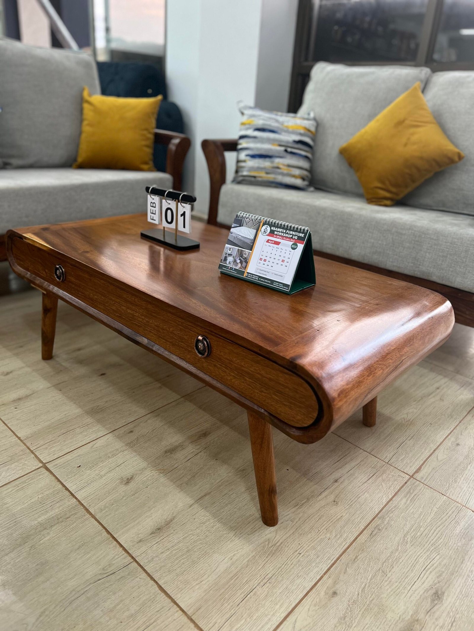Upgrade your living space with the Side Wooden Sofa Set (Full Set) from Nsambya Furniture Workshop Ug. This beautifully crafted sofa set combines solid hardwood durability with elegant design, offering both comfort and sophistication for your home.
