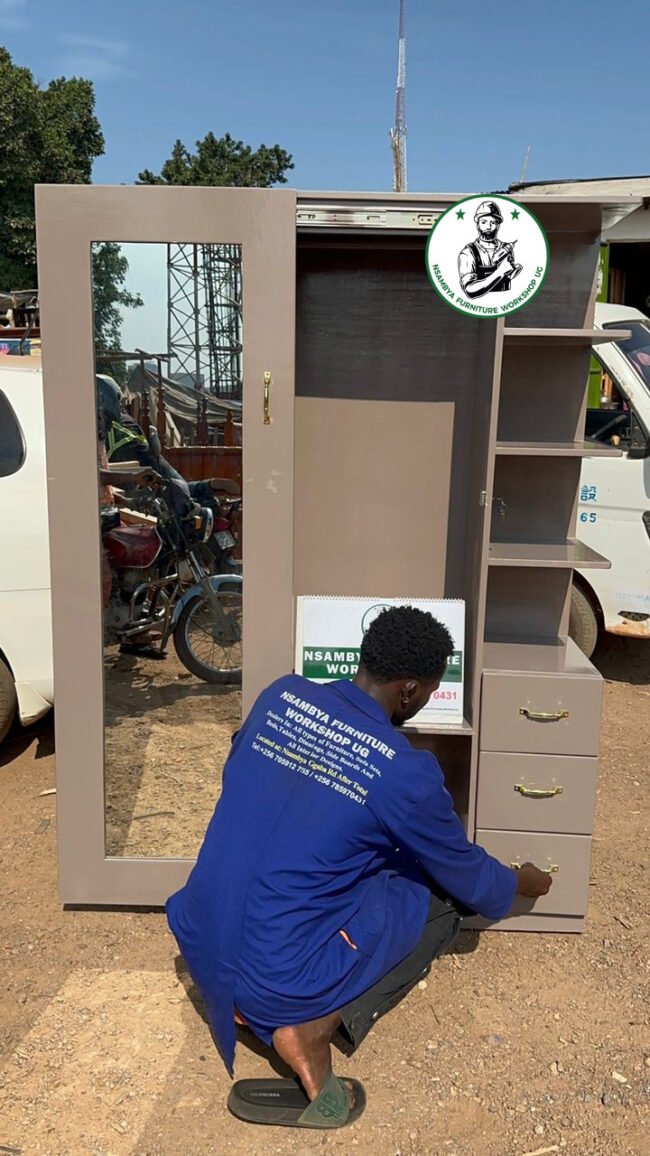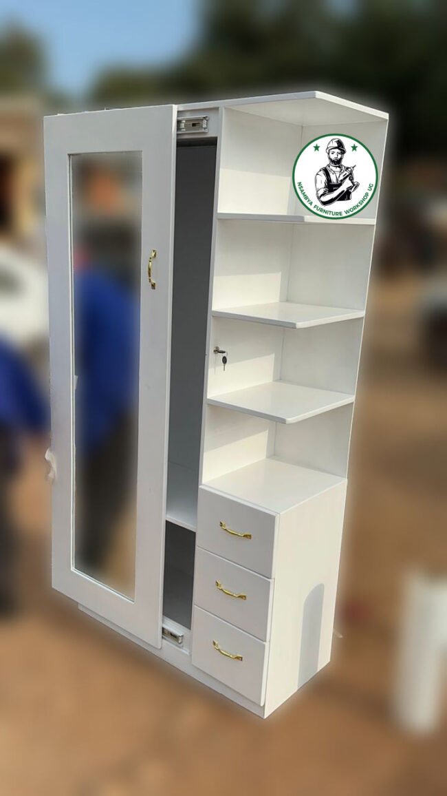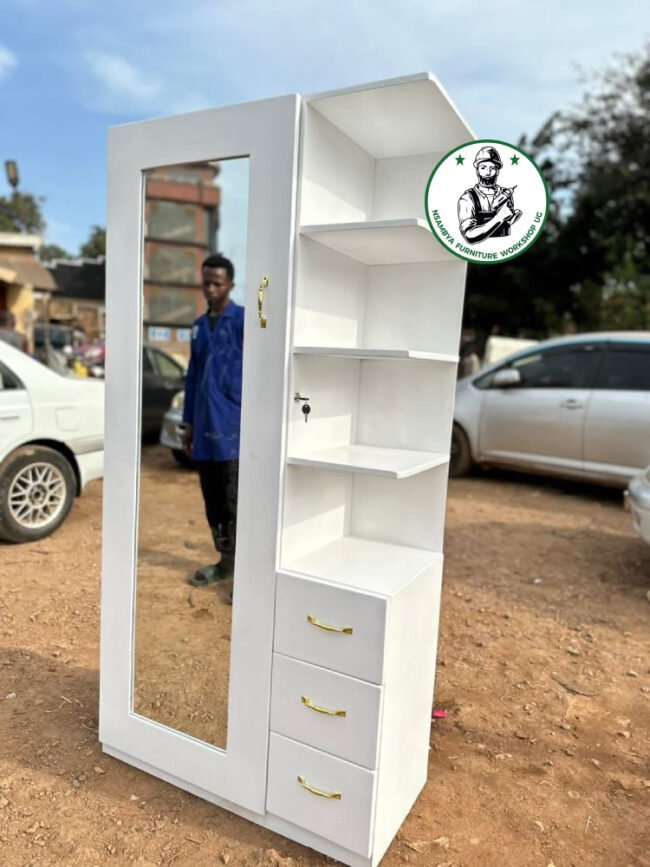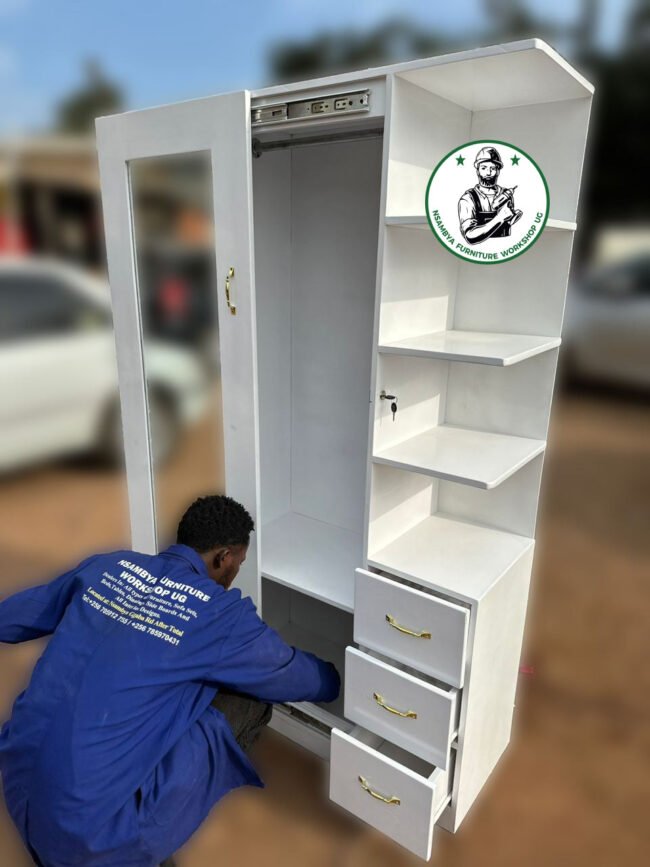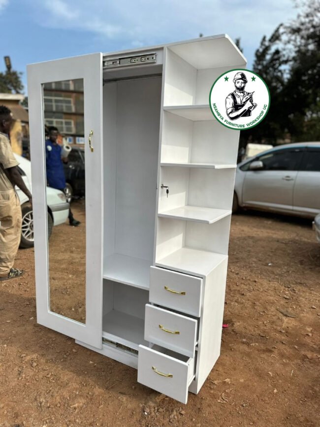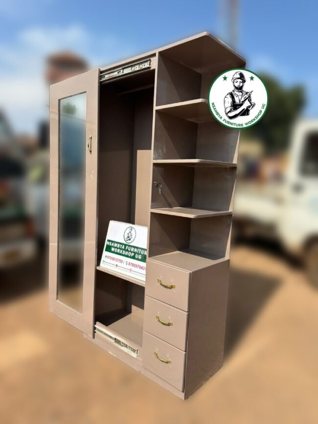 Optimize your bedroom space with our stylish sliding wardrobe. Designed for both functionality and elegance, this wardrobe features smooth-sliding doors that save space and provide easy access to your belongings. Crafted from high-quality materials, our sliding wardrobe offers ample storage with customizable shelves, hanging rods, and drawers to keep your clothes and accessories organized. Available in various finishes and designs, it seamlessly blends with any decor while adding a modern touch to your room. Perfect for maximizing storage in smaller spaces, our sliding wardrobe is the ideal solution for a clutter-free and stylish bedroom. All at Nsambya Furniture Workshop Ug