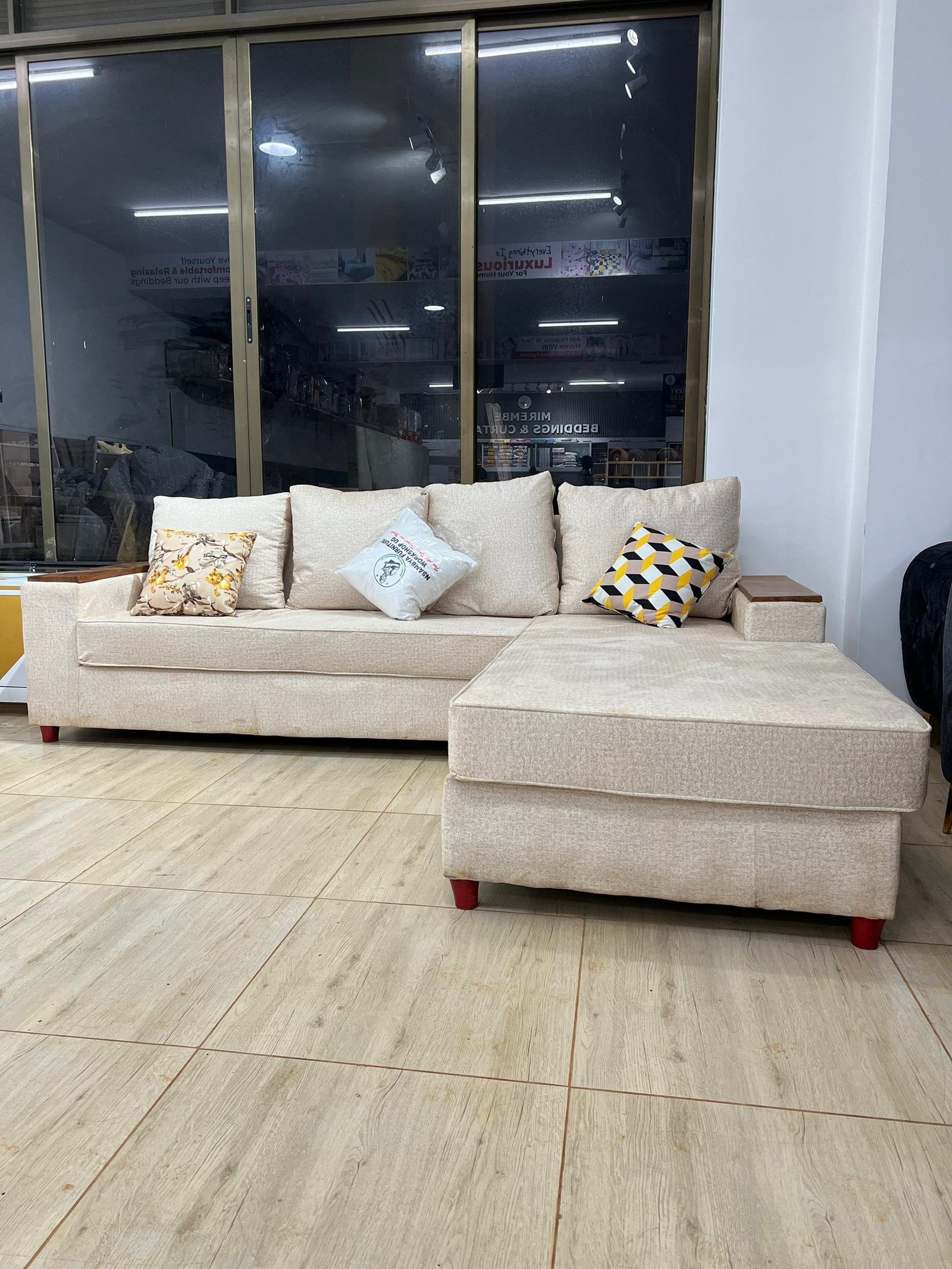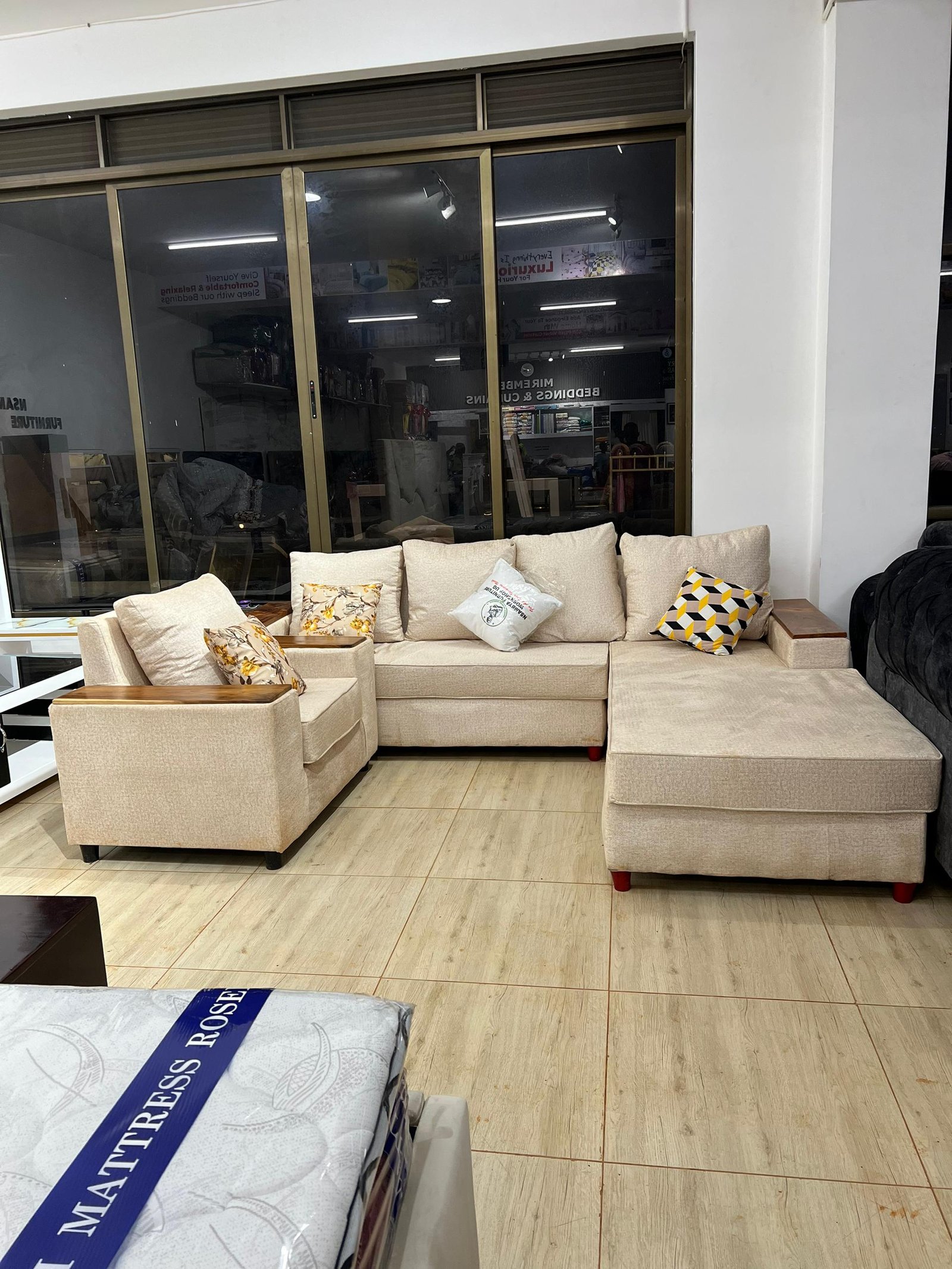 Get the best of both worlds with Nsambya Furniture Workshop Ug’s multifunctional L-Shape Sofa Bed. Perfect for maximizing space in your living room or guest room, this cleverly designed sofa easily transforms into a comfortable bed when needed. Crafted with a sturdy hardwood frame and high-density foam cushions, it offers durability, support, and lasting comfort. The spacious L-shape design provides ample seating during the day and a cozy sleeping area at night. With options for built-in storage compartments and customizable fabric or leather upholstery, this sofa bed is both stylish and practical.