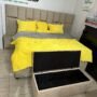 The centerpiece is the magnificent 5×6 bed, featuring a unique headboard characterized by its sleek vertical paneling. These clean, strong lines create a sense of height and architectural interest, adding a touch of drama and elegance. The minimalist design is versatile, complementing a wide range of bedroom decors.