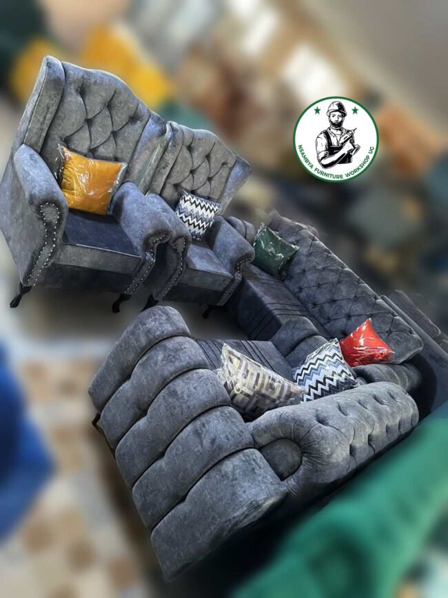 Add a touch of elegance and sophistication to your living room with our luxurious tufted sofa sets. Featuring intricate button-tufted detailing, these sofas exude timeless charm and offer exceptional comfort. Each piece is crafted with high-quality materials, including plush upholstery and sturdy frames, ensuring durability and style that lasts. Available in a variety of colors and configurations, our tufted sofa sets can seamlessly fit into both classic and contemporary interiors. Perfect for relaxing, entertaining, or making a statement, these sofa sets combine aesthetic appeal with unparalleled comfort to enhance your home decor with Nsambya Furniture Workshop Ug.